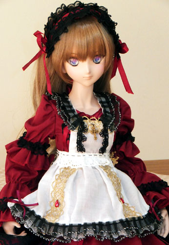 ワークショップとは別に、フリー参加した方がドルクロのオリジナルキット「Doll CLOSET sewing pack 1/3エプロン」にデコレーションした作品。