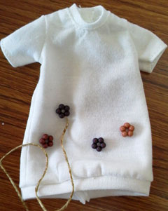 まずはシャツにアレコレ飾りを乗せてみて、イメージを膨らませます。