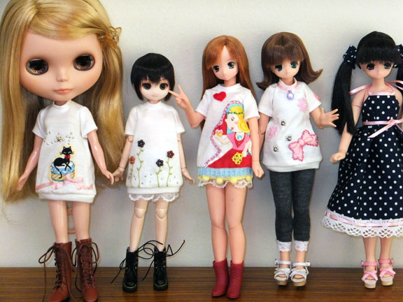 デコレーションしたTシャツを並べて記念撮影。この写真のキノはTシャツの下にドロワーズ履かせています。