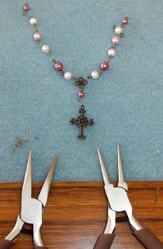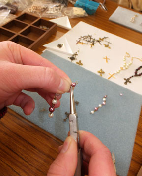 パールと十字架と金具の色が決まったら、いよいよ組み立てです。