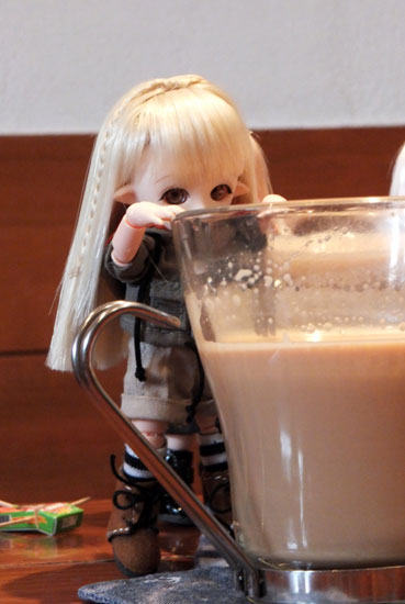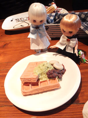 食べるよりもまず撮影です。アイスが溶けてもお茶が冷めてもまず撮影。人としてどうなのか問うても、ドールCafeなので仕方がないのです。