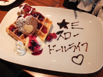 描いて貰った文字は、最終的にワッフルで拭い取られて私のお腹に吸収されました。焼き立てワッフル&アイスクリーム、とっても美味しかったですよ。