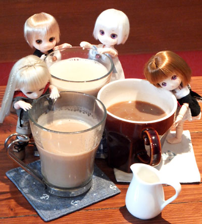 カフェだと小さい子の方が身軽と聞いていたのと、当日の天候から大きい子は無理と考えておりましたが、実際に集まったドール達は大きい子の方が多かったという…