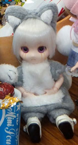 うちの子を着ぐるみに着せ替えて、とりあえず適当にポーズつけて座らせてみたら、