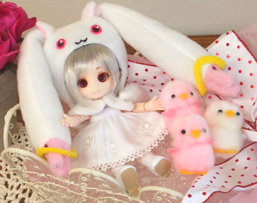 ピコラちゃん、キュゥべえセットにお召し替え。可愛く撮れたから、クリックするとでっかく表示しますよ!