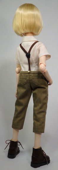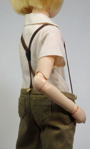 シャツもズボンも前開きタイプで、サスペンダーは飾りではなく実際に吊っています。