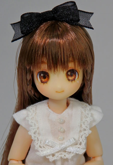 リボンカチューシャは細い針金にオーガンジーリボンを縫い付けたもの。靴はアゾン製のストラップシューズです。