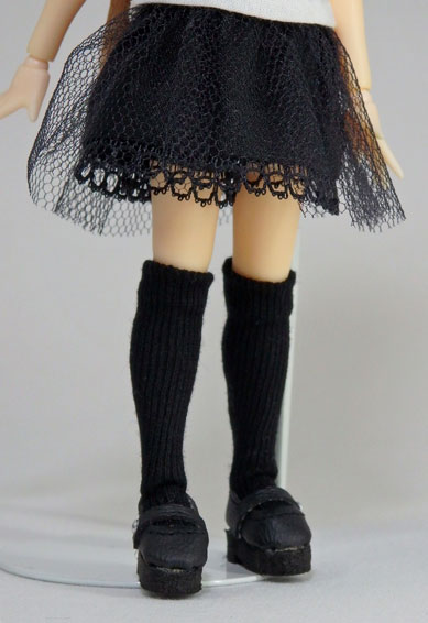 靴下は手持ちの中で一番薄いニット地(色移りテスト済みのもの)を使ったのだけど、それでも何だかモッタリして見えます。1/12サイズは本当に生地選びが難しいです。