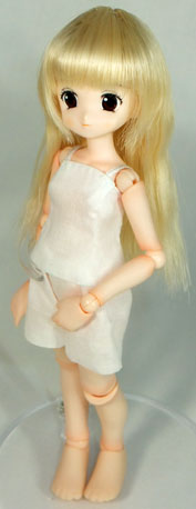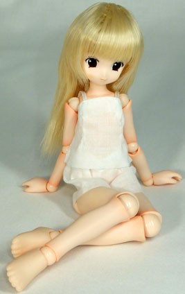 パンツはオビツ11サイズのドロワーズの型紙そのままで作ってみました。 キャミで隠れて見えませんが、実はヘソまで隠れるデカパンです。