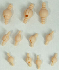 上から9mm、7mm、5mmの球体関節で、軸の太さは球体のサイズによって異なります。