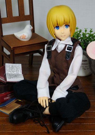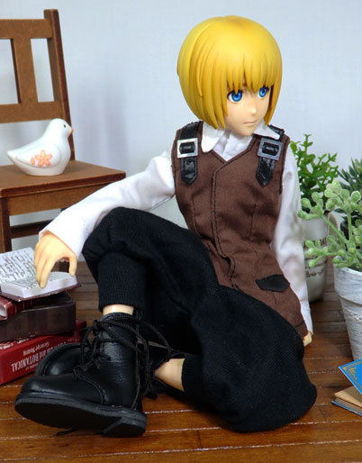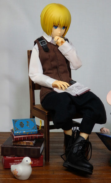 椅子に座って考えごとをするアルミンくん。