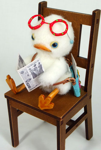 可愛い鞄に入っているのはとてもリアルな新聞。生まれたばかりのぴぃちゃん、本当に読めているのでしょうか。