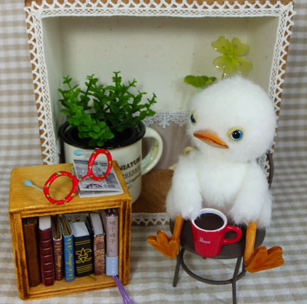 一目惚れした子だけど、このブログではあんまり活躍しないかもしれません。でも私の宝物です。機織鳥さん、ぴぃちゃんを作ってくださってありがとうごさいました。