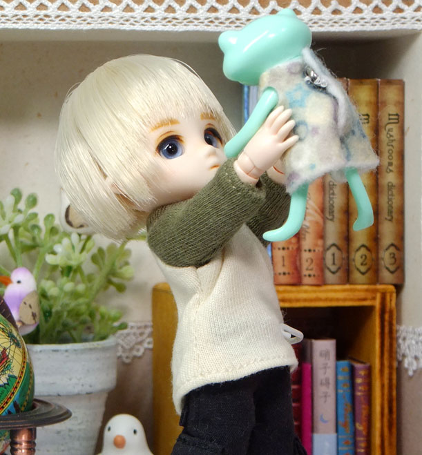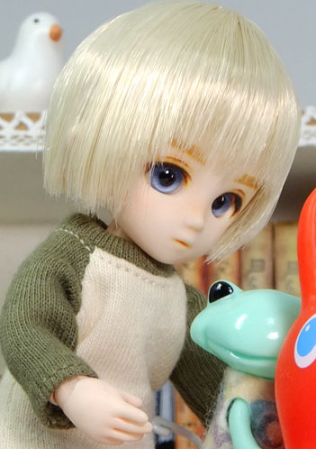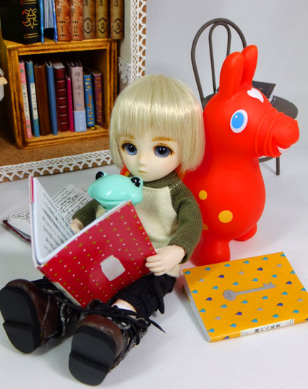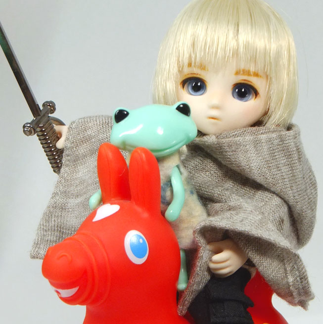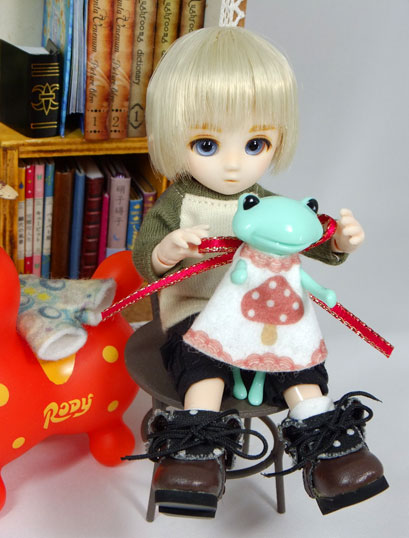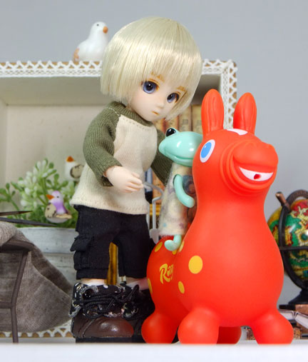 今回は、ロディやピノで遊ぶおチビの写真を載せています。「いきもの」ではなく、あくまでもカエル人形で一人遊びをしている設定です。