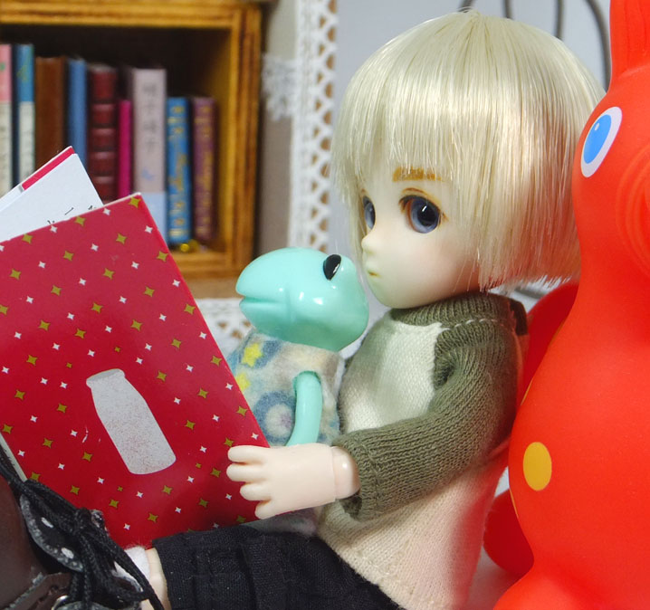 ロディに寄り掛かってピノを抱っこして、でも何となく寂しそうな表情。誰かの帰りを待っているのかもしれません。