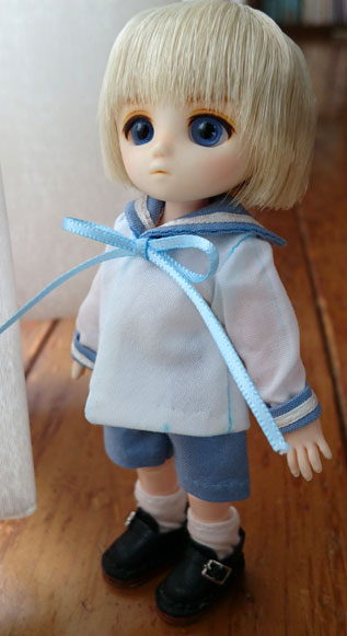 作ってる途中のセーラー服を着せてみたところ。