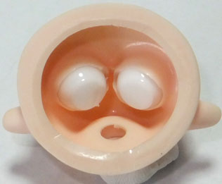 ヘッドの大きさに対して目玉の大きさがギリギリ限界のようで、目玉袋にドールアイを入れると顔面が横に広がって変形してしまいました。