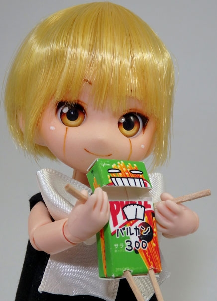 ウィッグは小さなドール用ウィッグのお店の「ピュアストレートロング・カナリーイエロー」をカスタム。