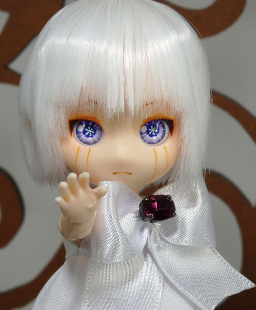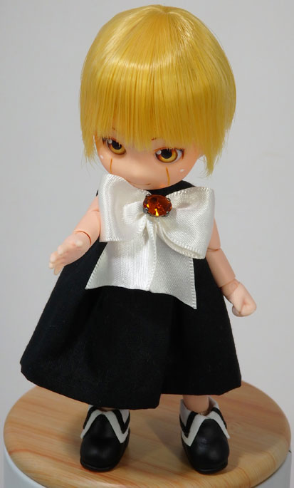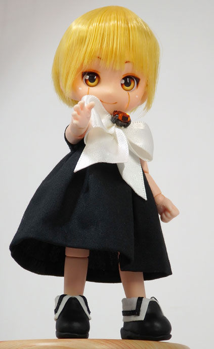 作中で「マント」と呼ばれているローブ状の服です。ドール仕様に仕立てると女児服みたいなワンピースになるのを避けられない、あの衣装です。