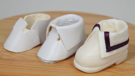 樹脂粘土と布のハイブリットで靴を作れる事と、靴底の付け方を参考にしました。