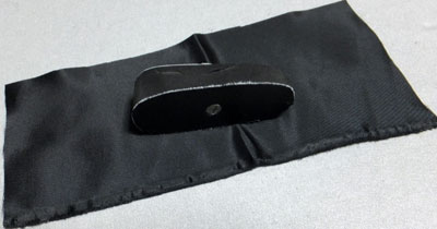 サテン生地を軽く引っ張りながら、皺が付かないように貼りつけます。土台の側面にぐるっと貼りつけたら、布端1cm程度を残して余分な布をカットします。