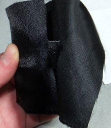 サテンはドルクロ材料フリマで購入したものです。たぶんナイロン製…たぶん。折り皺はアイロンでは取れませんでしたが、今回に限っては問題はありません。