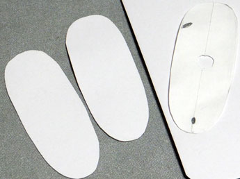 型紙に書き込んである「鼻緒の穴」の位置を正確に写し取り、千枚通しで穴を開けました。
