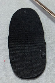 草履の底面用の布を切り抜き、土台パーツの底に貼りつけます。