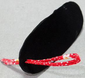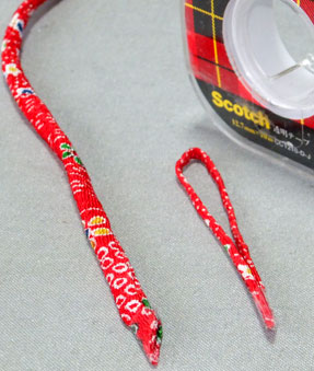 指で挟む部分の紐は型崩れしないよう、セロテープで仮止めしてあります。