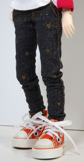 バスケットシューズはたしか、ドール服資材のお店で買ったような…。靴紐は自分で1.5ミリのサテンリボンに付け替えました。