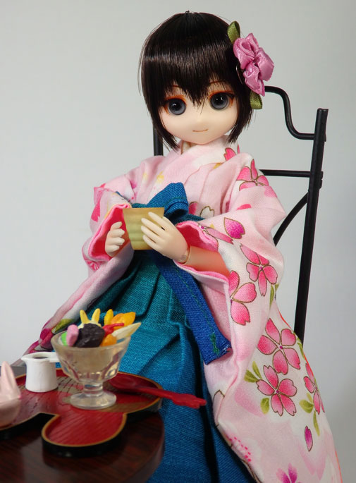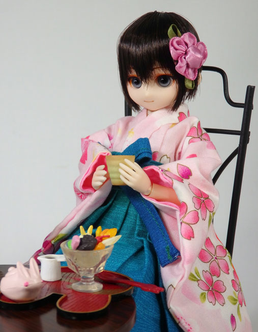 過去写真では21cmボディで着ていた着物です。22cmボディに変わって、より綺麗に着こなせるようになりました。