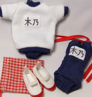 体操服セットとスクール水着、上履きと巾着セットはアゾン製です。
