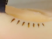 1000番の耐水ペーパーを二つ折りにして、折り目の細い面を使って睫毛と睫毛の間の汚れを取り除きます。ヤスリ掛けする際に水を付けるのを忘れずに。