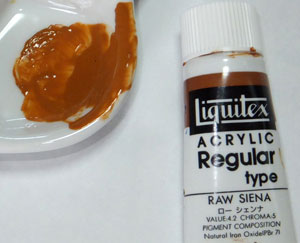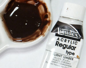 バーントアンバーを使います。アイラインをより黒っぽくしたい時は、ここにウルトラマリンブルーを混ぜます。