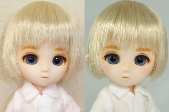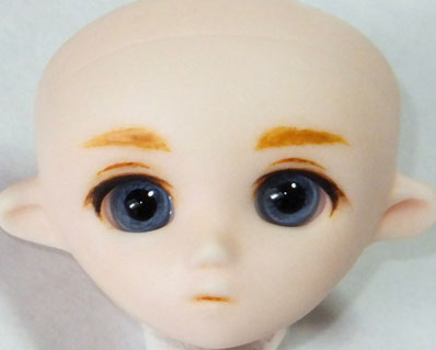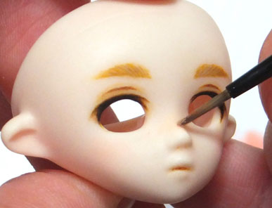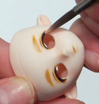 正直言って、顔幅2.5センチの小さいヘッドの目尻や目頭のほっそい線のエッジを、筆のイリヌキだけで表現する技量がありません。