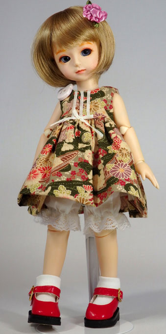 今回着せている服は、確か14〜15年くらい前?にPARABOXで買った「トイスケルトンぬいぐるみ」用のワンピースです。身頃がガバガバだったので、見られる程度に詰めました。