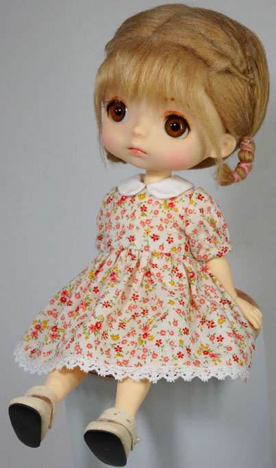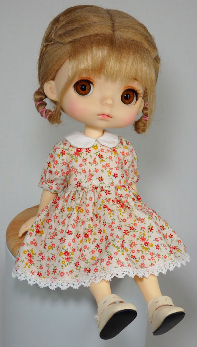 ドール雑誌に掲載されていた、リカちゃん用のワンピース型紙を改変して作りました。