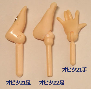 オビツ21のハンドパーツがオビツ22足のジョイントと同じ太さです。