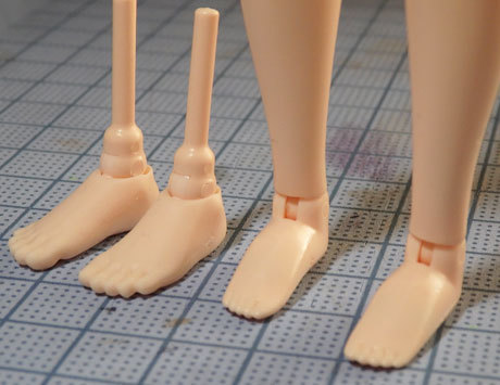 オビツ22ボディの足を、21ボディの足パーツに挿げ替えた状態
