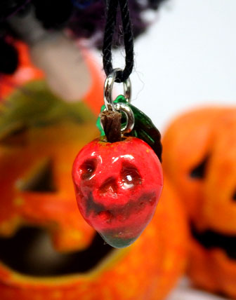 ネックレスのリンゴは、よく見ると真っ赤な髑髏です。
