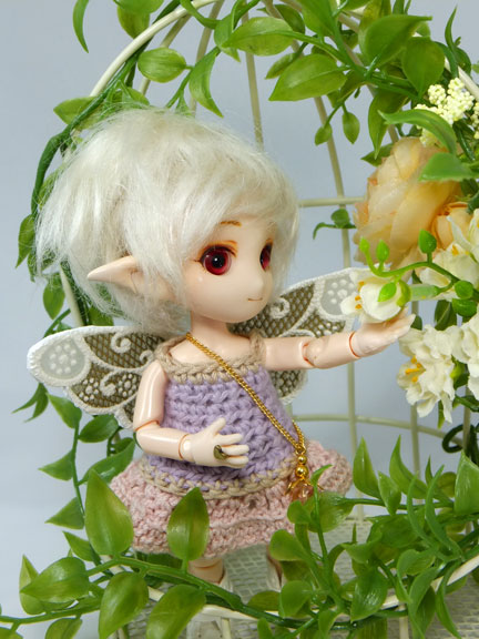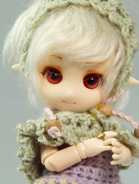 顔がメインの写真になってしまいましたが、右手の指をご覧ください。ハートモチーフの指輪です。オビツ11サイズですよ~!すごい!