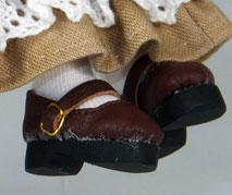 なんで小さな女の子に渋い茶系のドレスを作ったかって、この靴にピッタリな服が欲しかったからです。