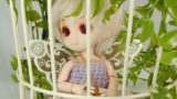 せっかくフリフリなので花カゴとか持たせてみましょう。元々は21cmの子用に買ったカゴなので、オーバーサイズ気味というか、重そう。