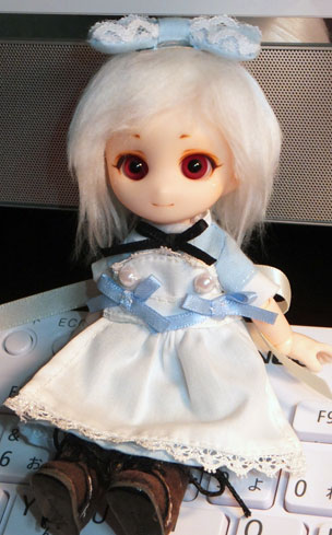 つけ睫毛もつけたいけど、上手く行くかどうか心配で実行できていません。いま着せている衣装はパラボのアリス服です。もちろん衣装も自作しますよ。