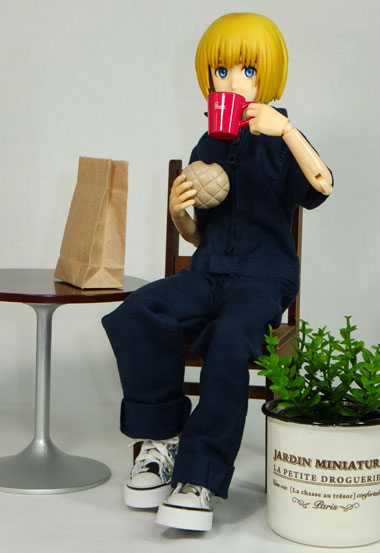 肩幅を縫い詰めたことで座りポーズがとれるようになりました。
