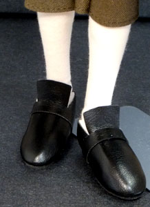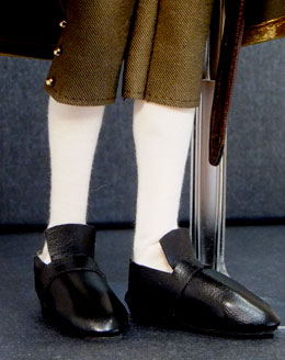 キュロットの下に履く白い靴下は脚線美を見せつけるため重要アイテムなのだそうで、脚のラインにピッタリになるように縫い直し、ぶかぶかの靴にはフェルトの詰め物をしました。