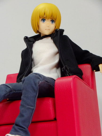 着せ替え用のアルミンくんのボディは、太腿の肉襦袢パーツを剥がして脚を細くしています。デフォのままの太腿だともっとムッチリした感じです。