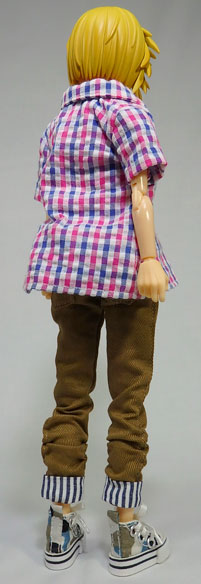 ウチのRAHミンは太腿の肉襦袢を剥がしてあります。無加工のパンツだと若干緩めですが、ぶかぶかという程でもありません。立たせたままだと徐々にずり落ちてくるので、時々グイっとズボンを上げながらの撮影となりました。
