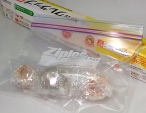 色移り部分にコッテリ塗り付け、ラップで包んだ上でジップロックで密封。
