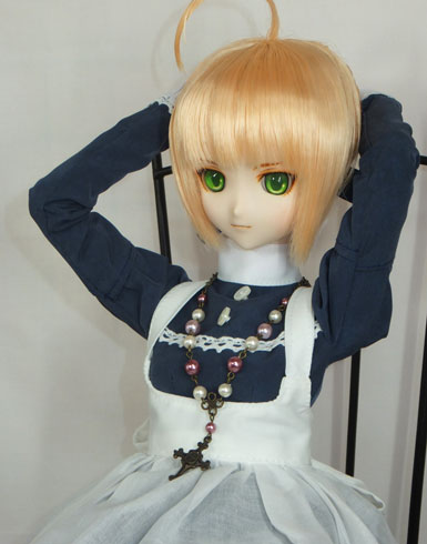 セイバーさんに睨まれながら、メイド服姿を撮影しました。去年の夏のアイドールで買った個人ディーラー製の衣装です。